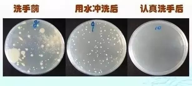 不洗手的話,培養(yǎng)基上可以看到大片的菌落,手經(jīng)過流水沖洗后,菌落數(shù)少了一些,但還是有很多;用香皂認(rèn)真洗手并擦干后,肉眼看不到細(xì)菌生長(zhǎng)!